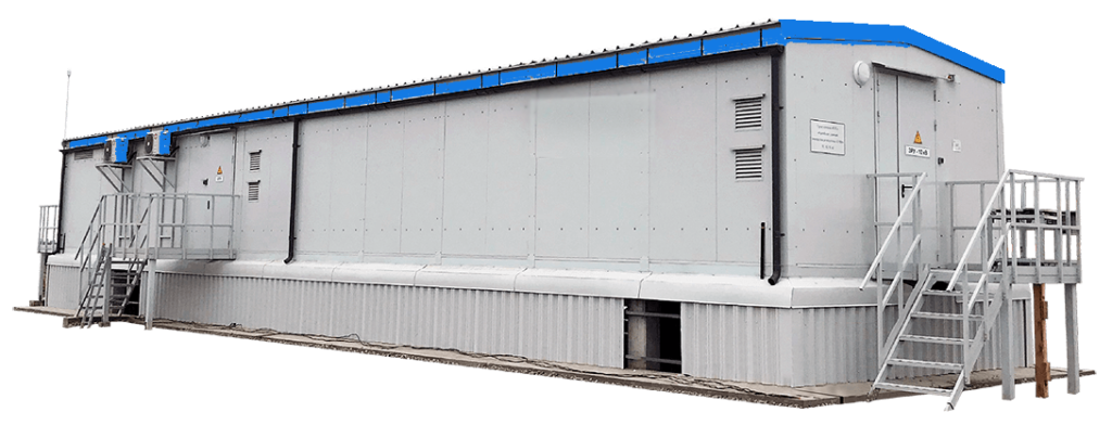 Electrical House (E-House) is a prefabricated walk-in modular enclosure to house medium and low voltage switchgear as well as auxiliary equipment.